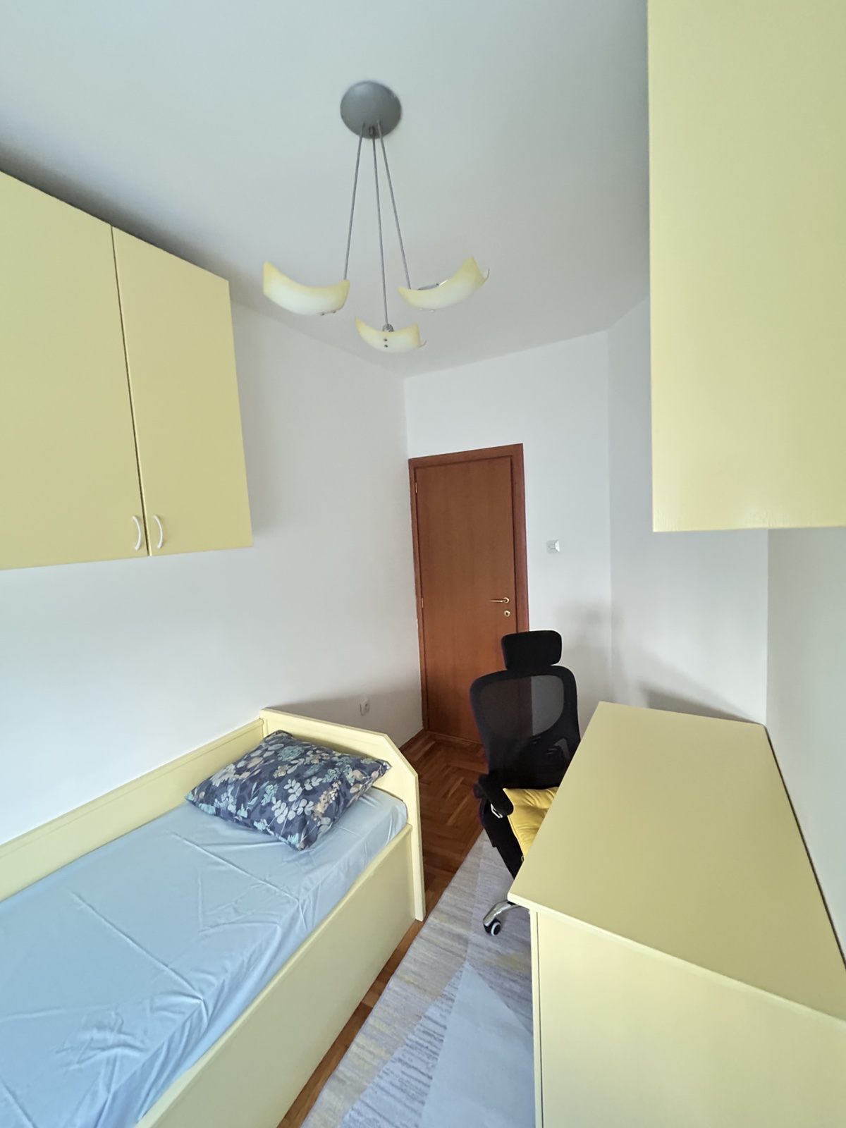 Description (Croatian): The apartment has 60 m² and consists of a living room, two bedrooms, and a balcony. It is located at Bulevar 13. jula No. 1A, Entrance I, in one of the most attractive parts of the city, close to the Millennium Bridge. The apartment is available for immediate move-in and is offered for long-term rental. The monthly rent is 700 EUR, with the possibility of adjustment.