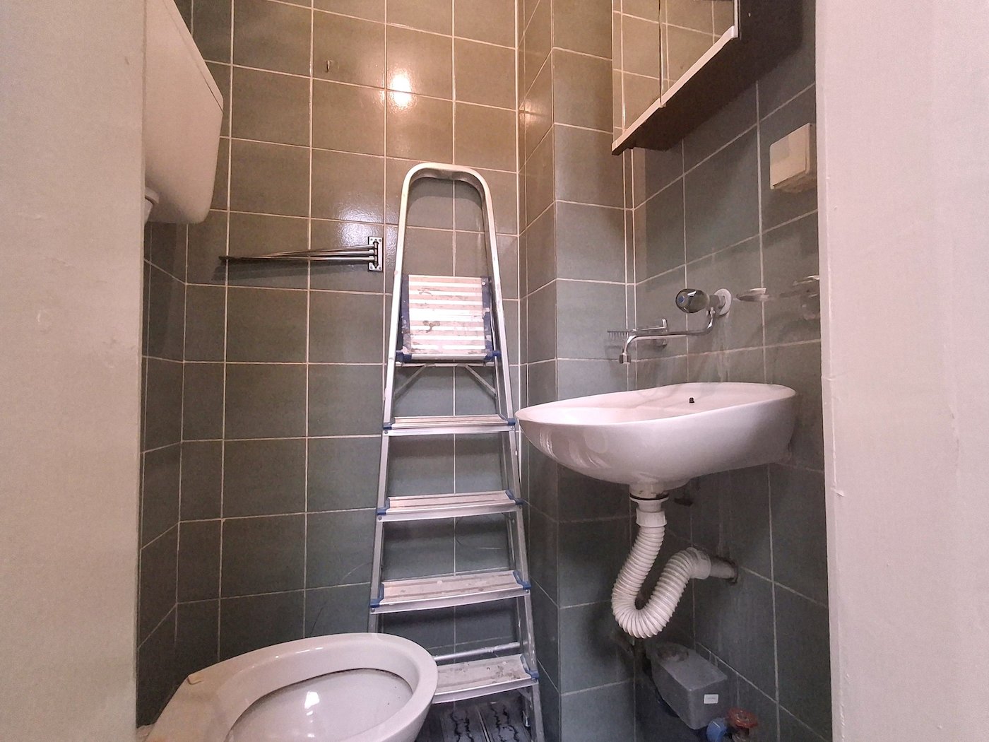 Conceived as one room with a toilet. It has a glass window.