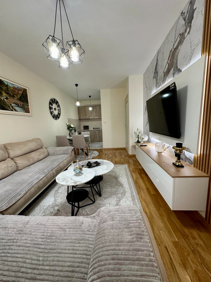 Description: A luxurious, very beautiful, sunny and functional two-bedroom apartment 60m2 for rent in Zagorič, street II Crnogorski battaliona, near the Protokol restaurant.