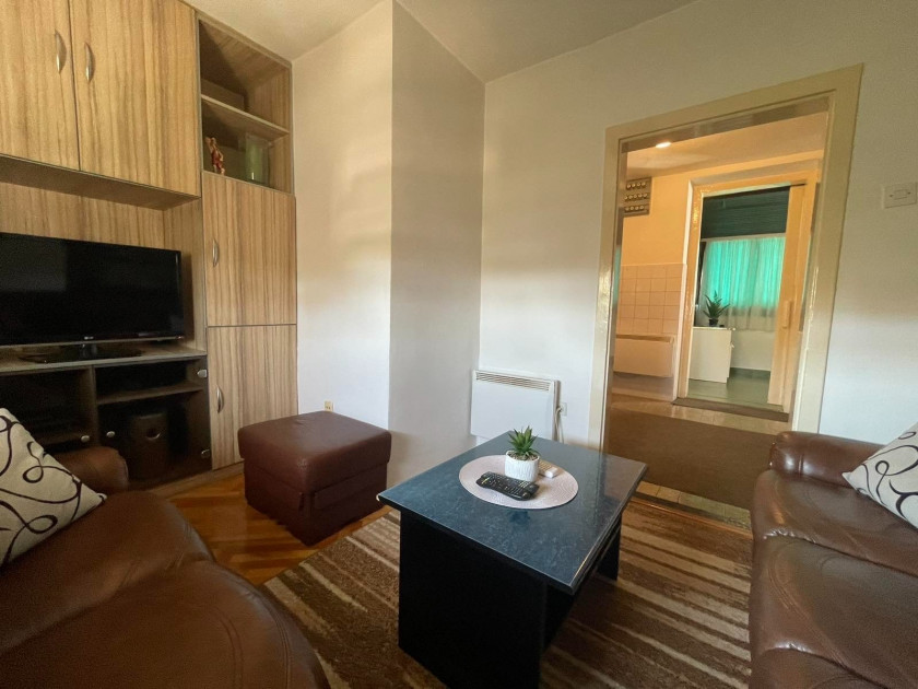 Description: A functional two-room apartment of 42m2 is for sale, located on the fourth, top floor of a residential building without an elevator, in the very center of the city. The apartment is fully furnished, has two air conditioners. Very bright and airy. A special advantage is the spacious terrace of 30 m2, which is used as an extension of the living space, although it is not registered in the real estate register. The building has a large common yard with parking for tenants, as well as playgrounds for children. The apartment is ideal for living, but also as an investment for rent due to its attractive location. Ownership 1/1, no encumbrances or restrictions.