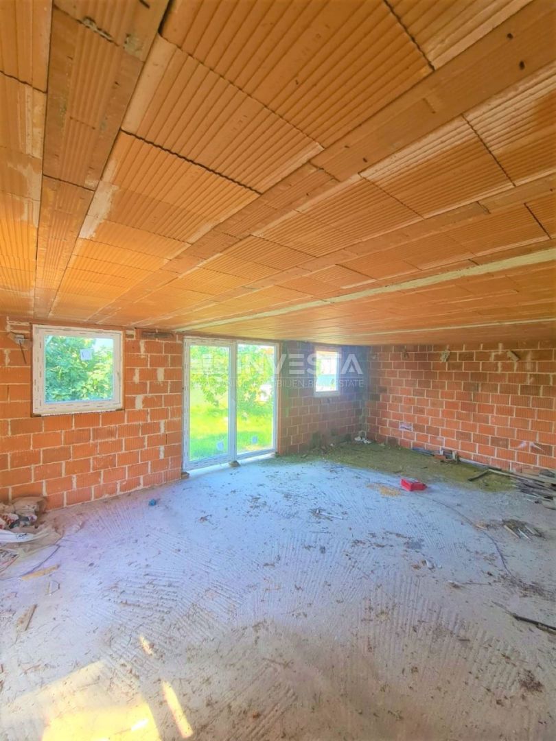 The ground floor house is in a shell construction phase, with installed PVC joinery, which allows future owners to finish the interior according to their own taste. The house is in the process of legalization, and its floor plan allows for the arrangement of a functional and comfortable space – ideal for a holiday home, family weekend house, or a rental property.