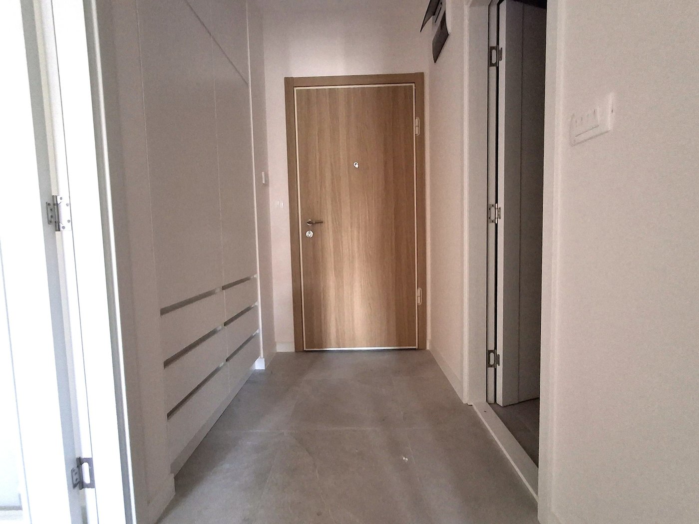 It is located on the 7th floor of a newly built building that has two elevators, regularly maintained entrance.