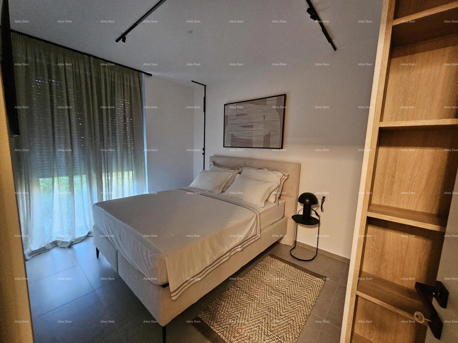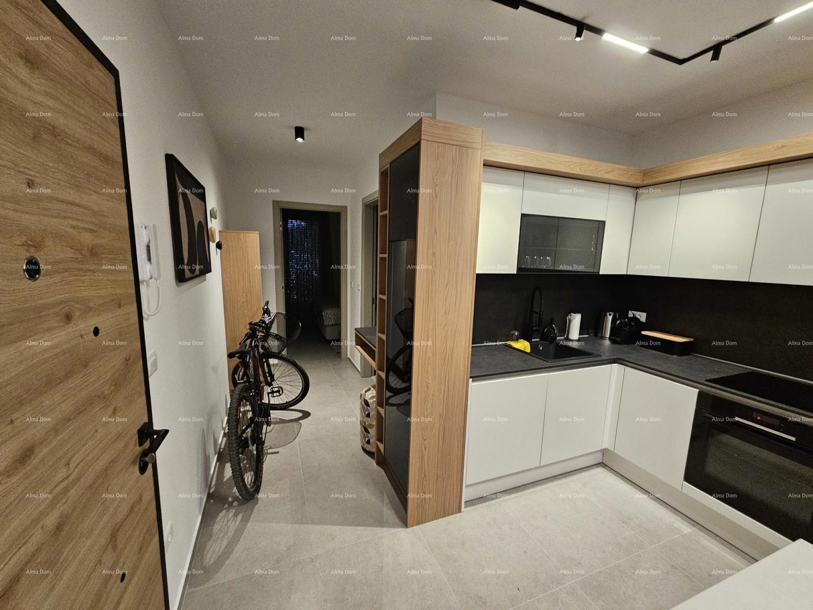 Description: For sale is a brand new, never-used ground floor apartment located in a quiet and well-maintained area of Pula. This quality-equipped apartment features top-notch interior furnishings, a functional layout, and a beautiful outdoor space that includes a terrace, a landscaped garden, a storage room, and two parking spaces.