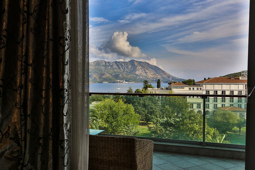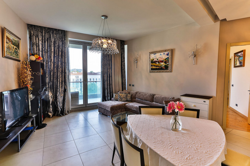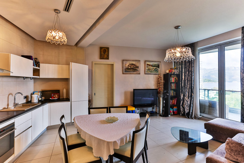 Na prodaju prostran dvosoban stan s direktnim pogledom na more i panoramskim prozorima koji mu pružaju obilje prirodne svjetlosti.