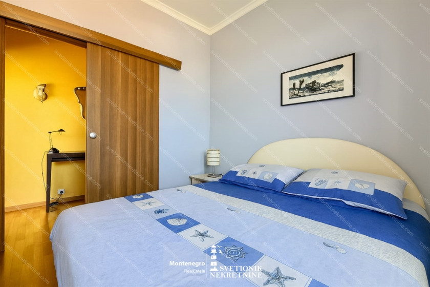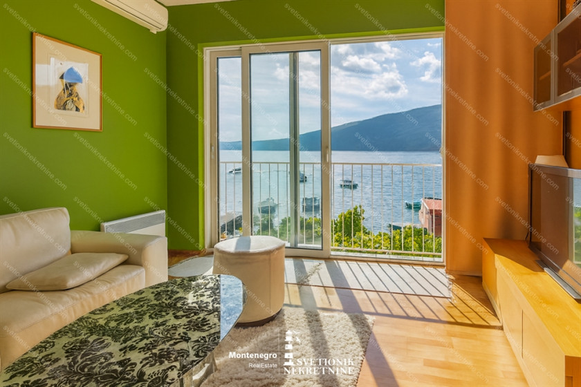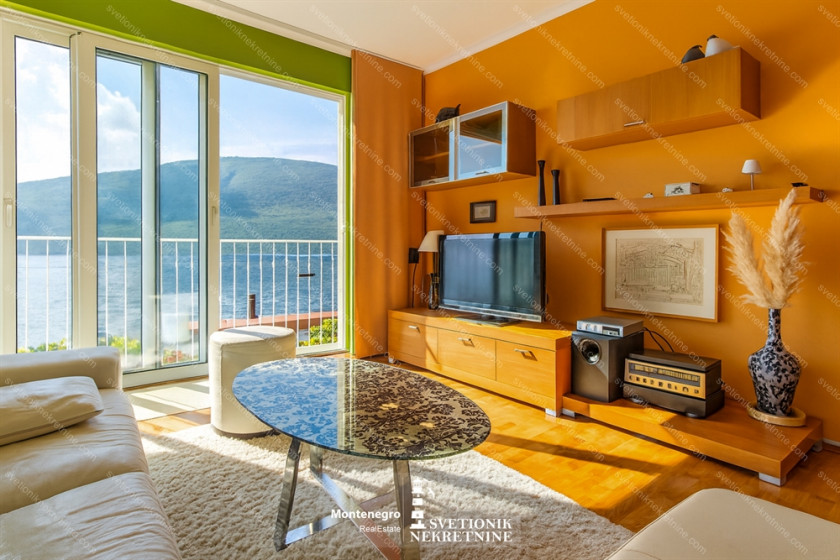 Description: Đenovići, Herceg Novi – Apartment 42m², first line to the sea, only 20m from the beach, near Portonovi Resort. Layout: living room, bedroom, kitchen with dining area, hallway and bathroom. Includes storage (3m²), laundry room (3m²) and option for boat mooring. Sold furnished.
