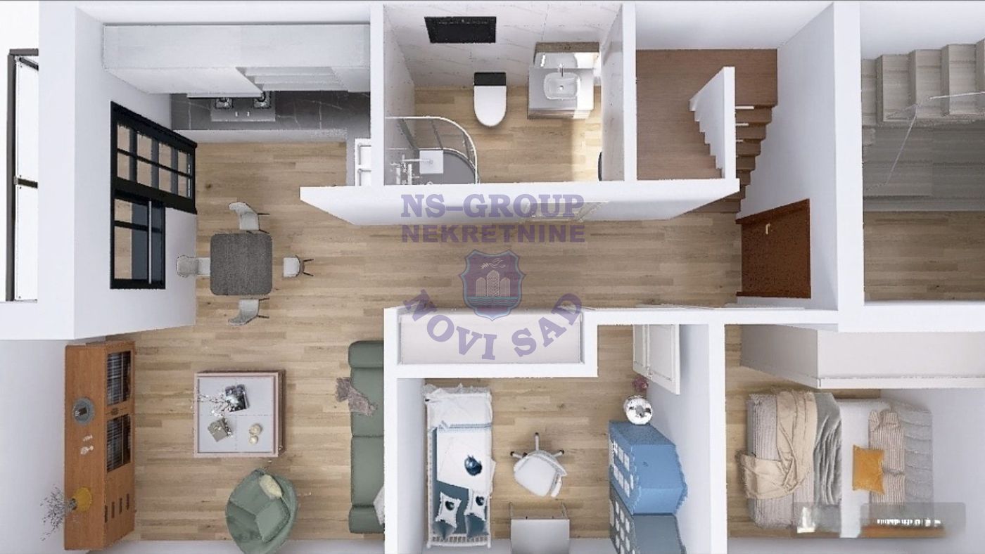Predstavljamo prelep šestosoban stan na ulazu u Veternik. Stan se sastoji iz dve etaže, na prvoj se nalazi dnevna soba sa kuhinjom i trpezarijom, dve spavaće sobe, kupatilo, terasa, kao i stepenište koje vodi na gornju etažu, na kojoj se nalazi dnevna soba sa kuhinjom i trpezarijom, dve spavaćče sobe, kupatilo i terasa. Stan može da funkcioniše kao dve odvojene stambene jedinice. Pogodan je za više porodica. Lokacija odlična za miran porodičan život. Za sve dodatne informacije pozovite nas.