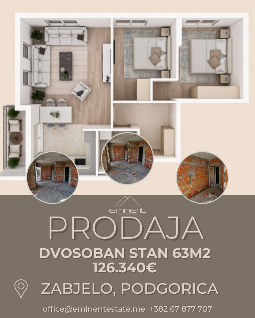 Description (Croatian): Stan u izgradnji 63m², Zabjelo, Prodaja