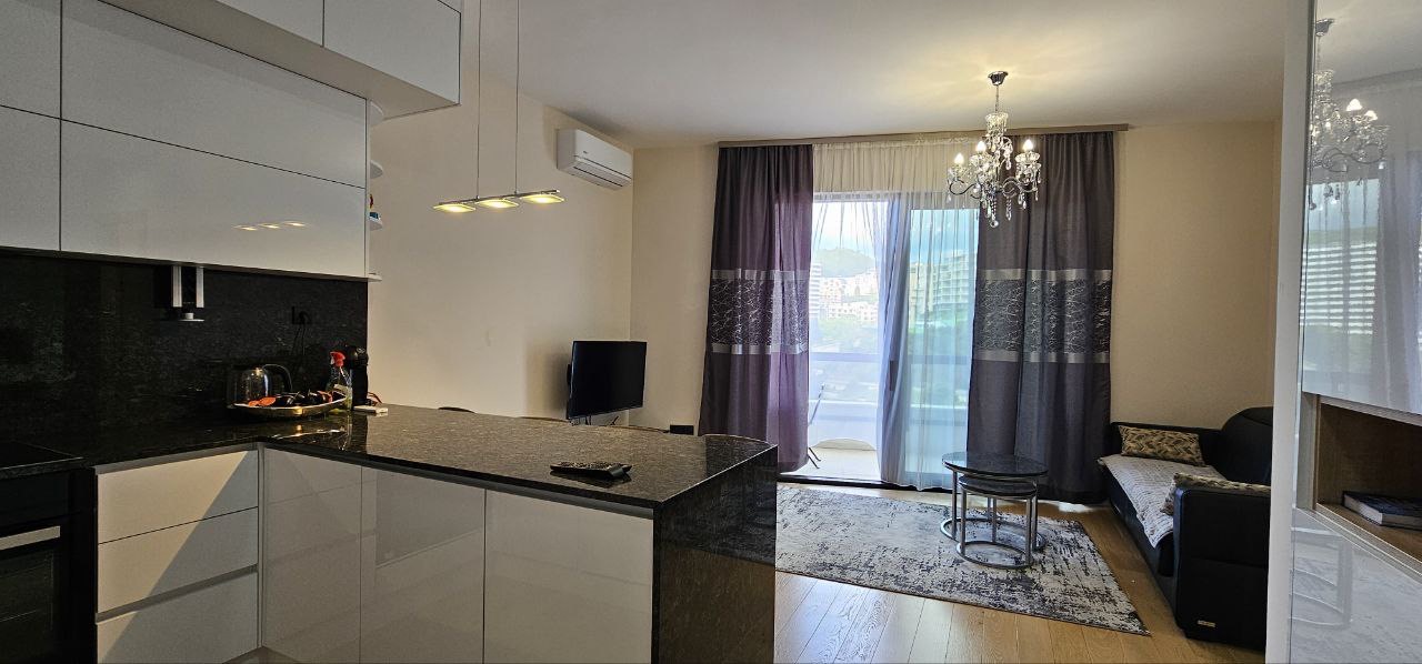 Description (Croatian): Izdaje se na godišnjem nivou dvosoban stan u Bečićima,opština Budva u kompleksu Cassa Al Mare.Površina stana iznosi 53m2 i nalazi se na petom spratu stambene zgrade sa liftom.Cena 1000€ mesec+računi.Uslovi plaćanja dogovor.Parking mesto uračunato u cenu.