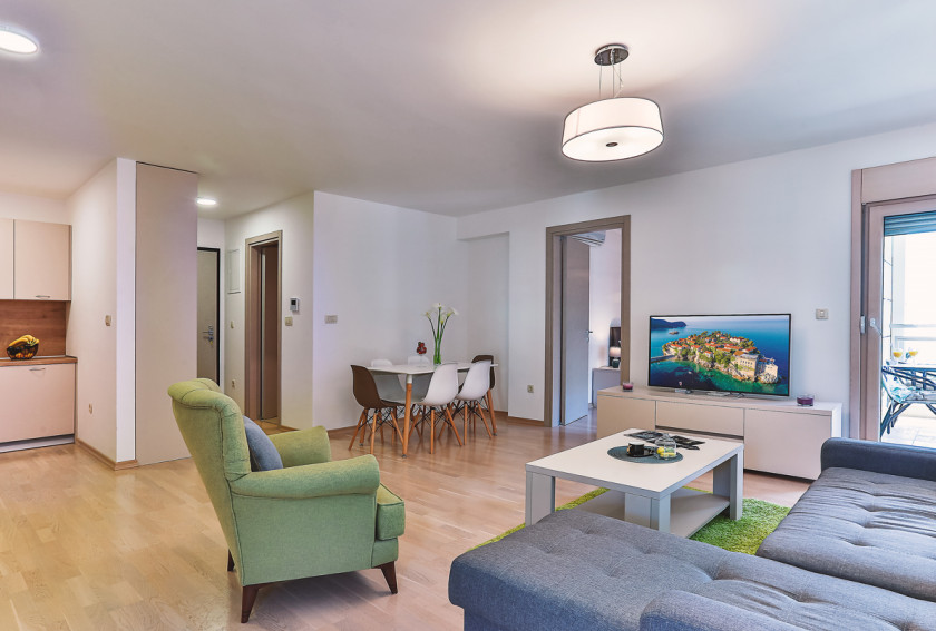 Description: Two-bedroom apartment for rent in the very center of Budva, on the first sea line.