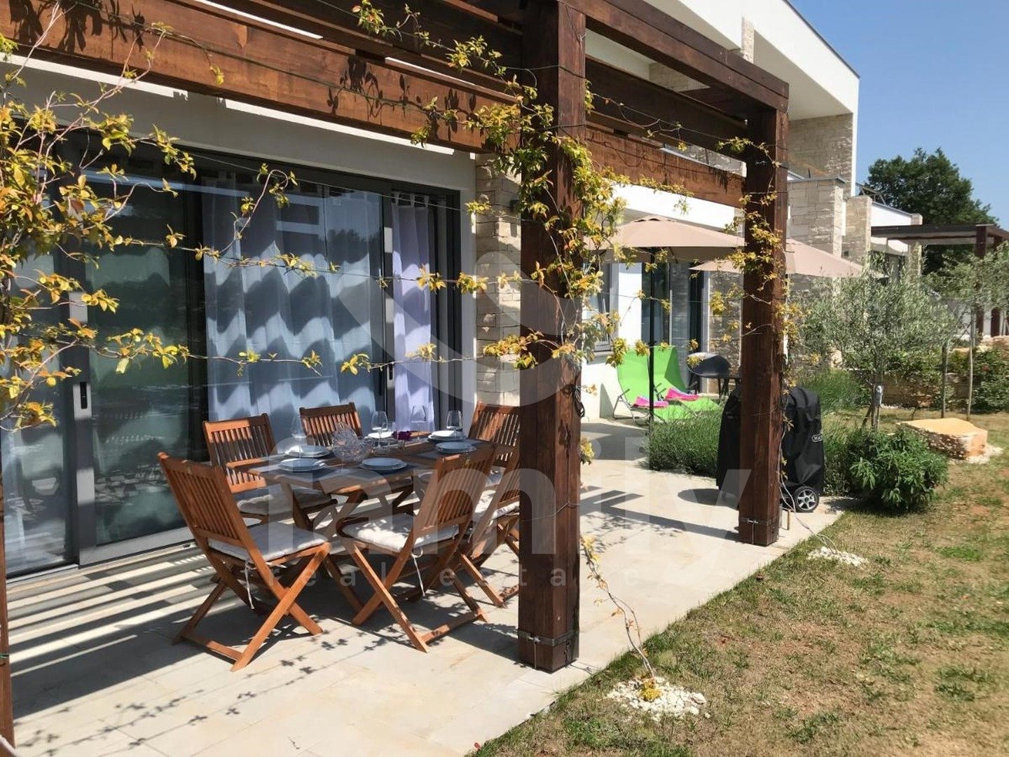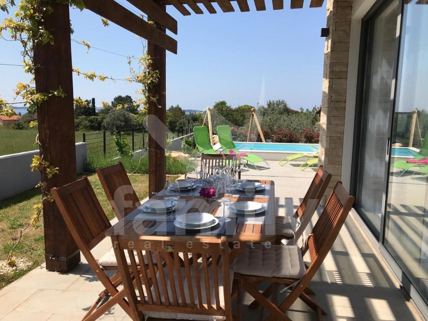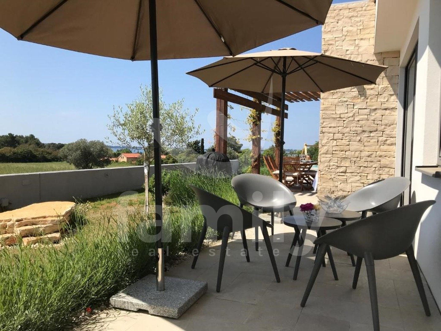 These two villas with a total area of 300 m2 are located in Peroj, and each of them is 150 m2 individually. Each villa is spread over two floors, ground floor and first floor. On the ground floor of each of these villas there is a toilet, bathrooms, two bedrooms and each has access to a common terrace of 100 m2 with a phenomenal open view of the sea and the Brijuni Islands, a spacious bright living room, kitchen and dining room. On the first floor of the villa there is a spacious bedroom with wardrobe and bathroom and a covered terrace....