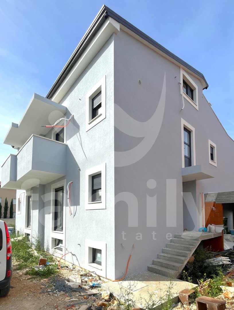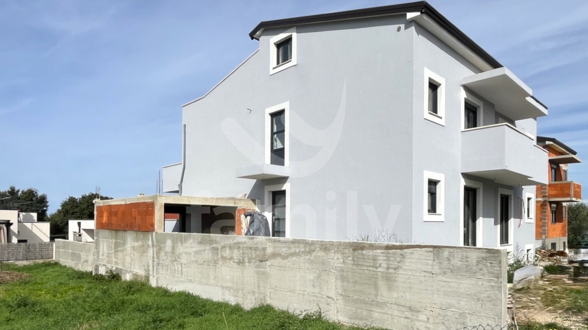 Only 350 meters from the center of Peroj and 650 meters from the sea is this semi-detached house with a wonderful sea view. The house is spread over four floors and consists of a basement, upper ground floor, first floor and attic with a total gross area of 716 m2. One of the advantages of this building is certainly the large terraces that have a wonderful view of the sea on the west side. Every room, with the exception of the basement, has access to a private terrace with a view of the sea or greenery. Both houses on the west side have a 25 m2 swimming pool....