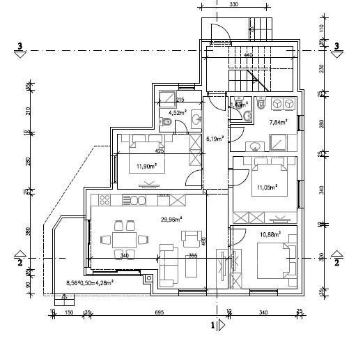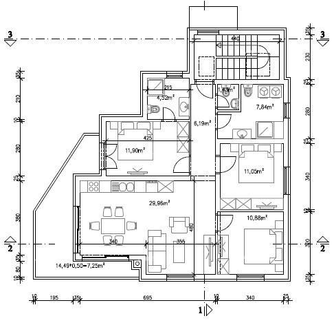 The planned building consists of three residential units. Each apartment includes:
