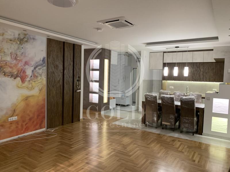 Description (Croatian): Izdaje se trosoban delux stan,kompletno opremljen,na najatraktivnijoj lokaciji-centar.Struktura stana:dnevni boravak,kuhinja opremljena posudjem i svim sto je potrebno,2 spavace sobe,predsoblje,kupatilo,mali wc,ostava i terasa.U stanu je instalirana centralna klima,uredjaj -detektor dima i uredjaj za preciscavanje vode.Kucni ljubimci nisu dozvoljeni.Cena 1100 plus troskovi.Depozit obavezan.Max.3 osobe.