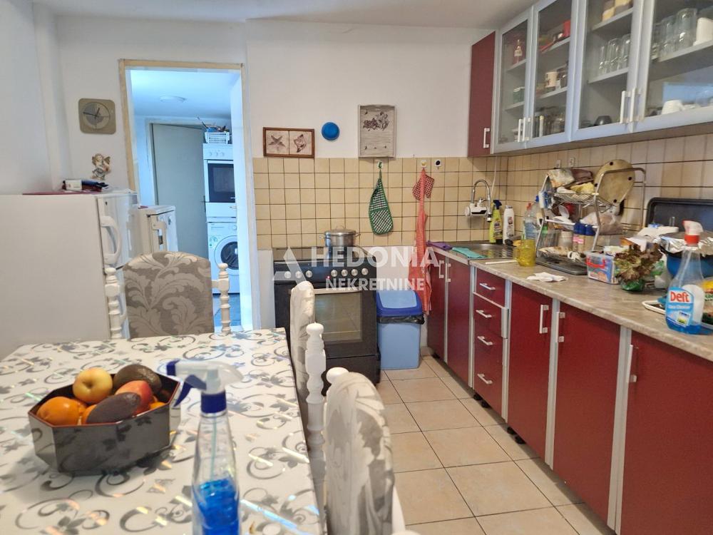Stan je renoviran i ima dva ulaza. Sastoji se iz ulaznog hodnika, kuhinje sa trpezarijom, dnevnog boravka, dve veće i jedne manje spavaće sobe, dva kupatila (u jednom je kada, u drugom tuš kabina) i terase od 20m2.