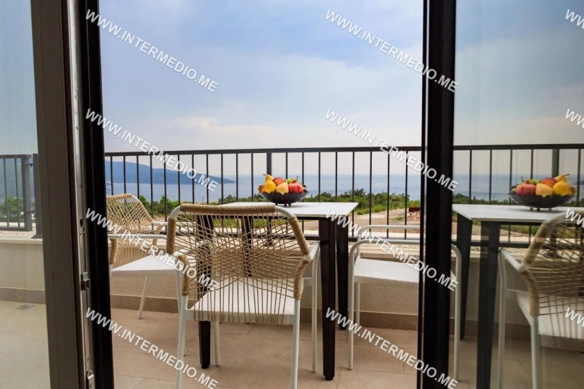 The apartment features a modern design, high-quality construction, and a stunning sea view.