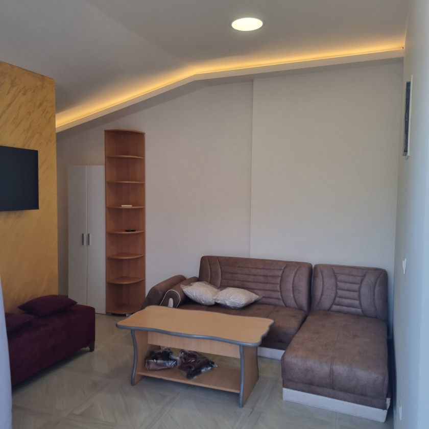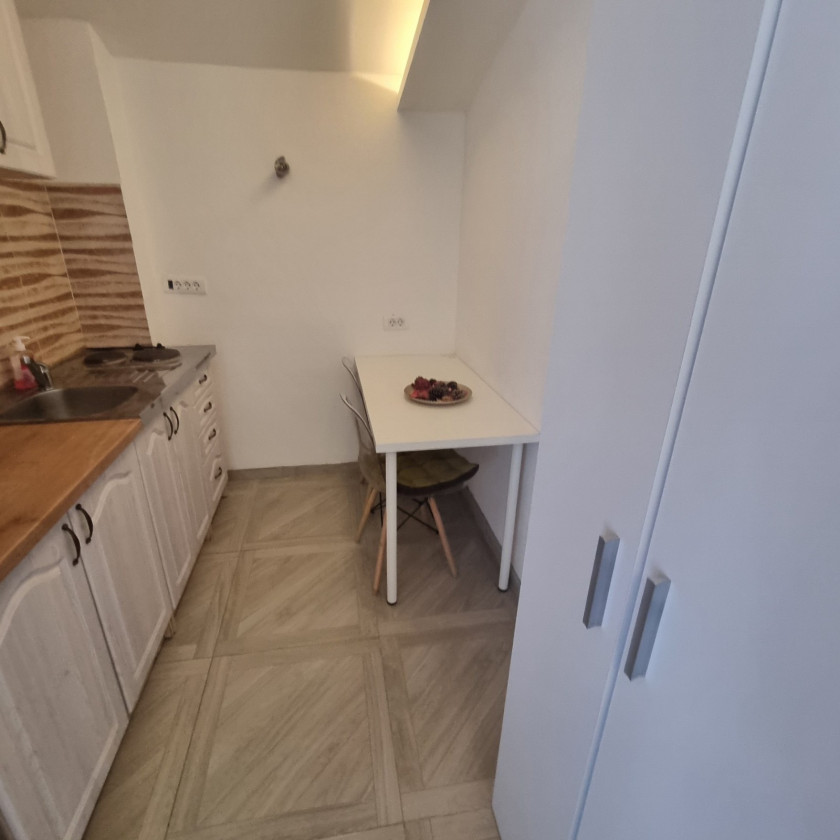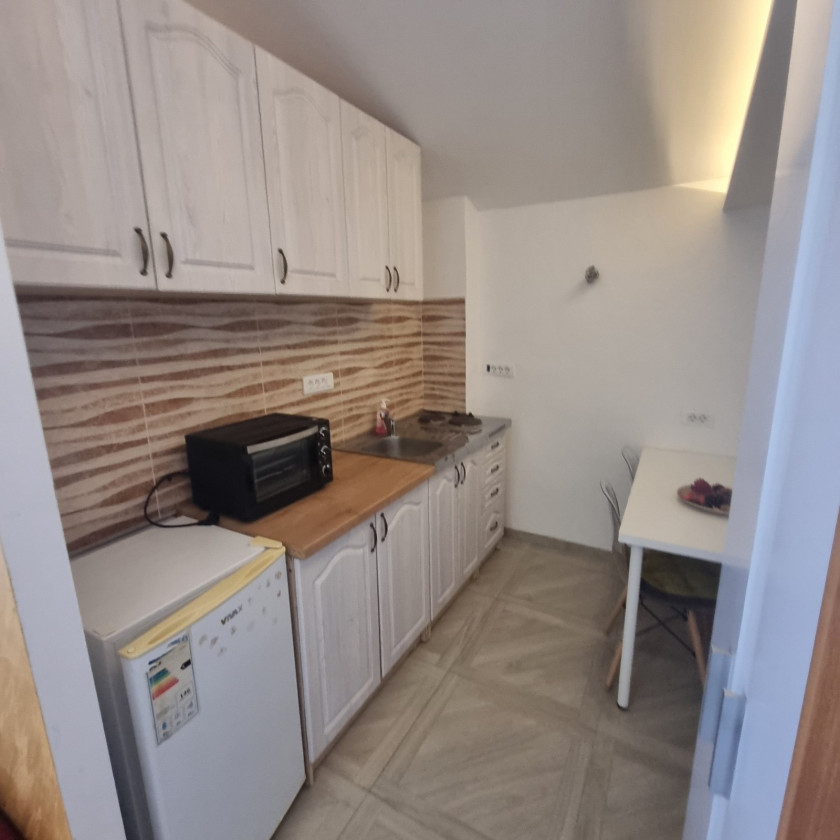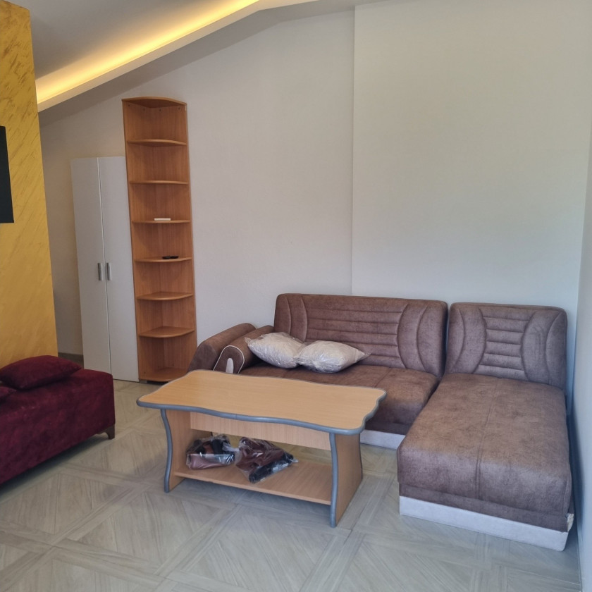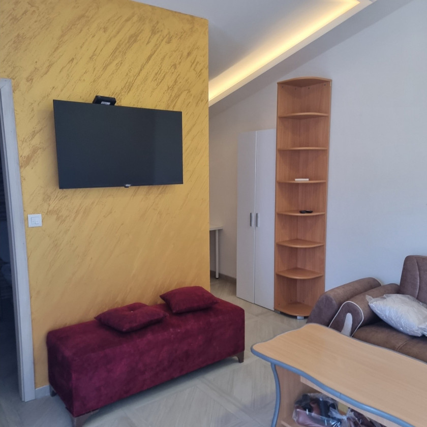 Description: One-room, furnished apartment for rent near Crvena Stijena Stadium and Novka Ubovic Primary School. The apartment is located in a large house with separate entrances for the apartments. Fully equipped with new furniture and kitchen. It has a separate terrace, bathroom and one room. Rent price 400e + 50e all charges (electricity, water, utilities, internet and cable).