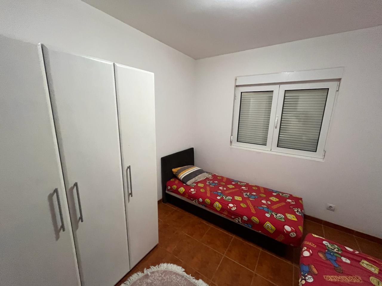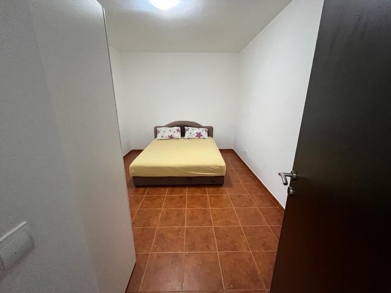 Ovaj stan je idealno smješten s pogledom na more. Sastoji se od ulaznog hodnika, dvije spavaće sobe, dnevnog boravka s kuhinjom, kupaonice i velike terase. Dokument prikazuje ukupnu površinu od 59 kvadratnih metara plus terasa. Stan se nalazi na drugom katu i ima vlastito parkirno mjesto. Neopterećen. Razmatra se i zamjena za odgovarajući stan u Podgorici. Stan je legaliziran.