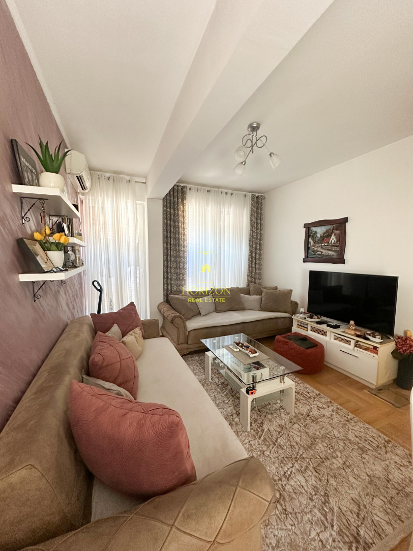 Sastoji se od dnevnog boravka sa izlazom na terasu, kuhinja sa trpezarijom, dvije spavace sobe od kojih jedna ima izlaz na terasu, kupatilo, hodnik sa ostavom i manj toaletom.