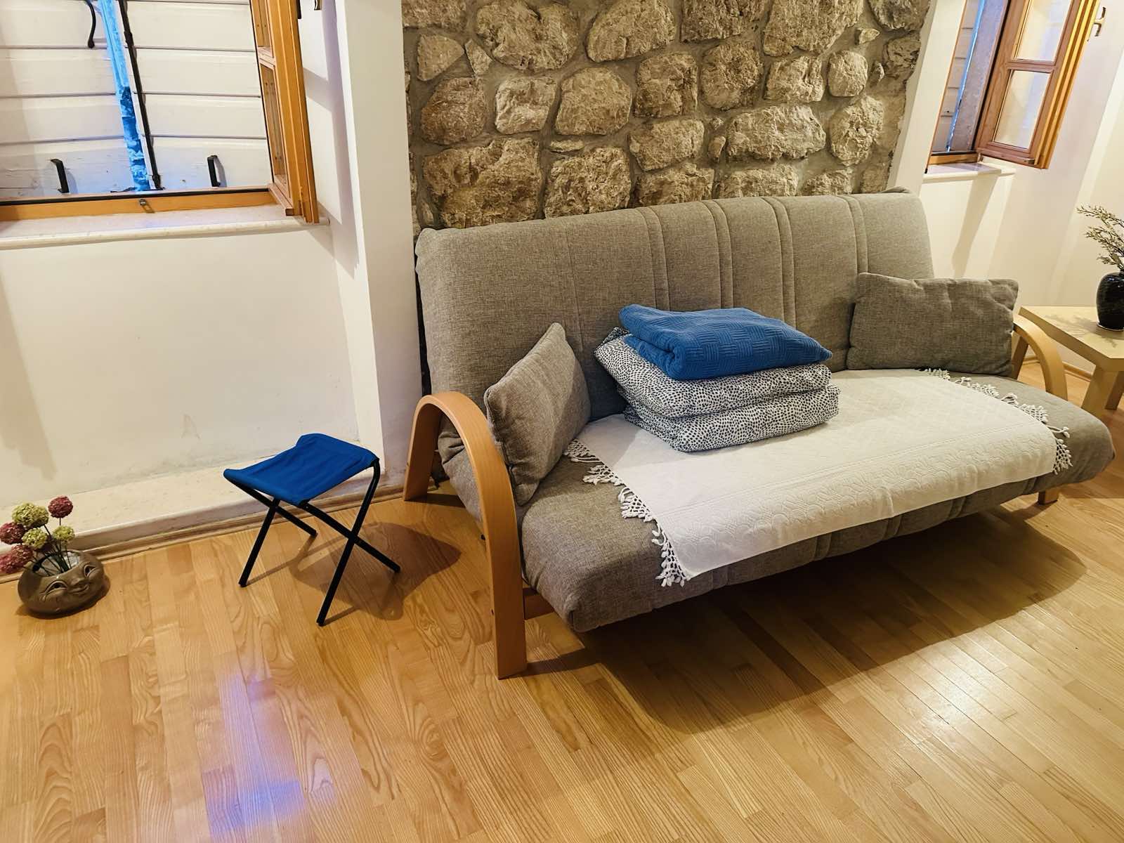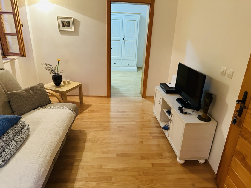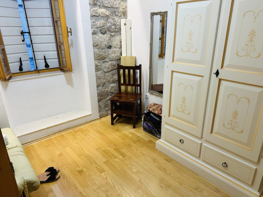 Veći jednosoban, namjesten stan od 60 m2 na prvom spratu manjeg stambenog objekta preko puta plaże u Prčnju, Kotor.