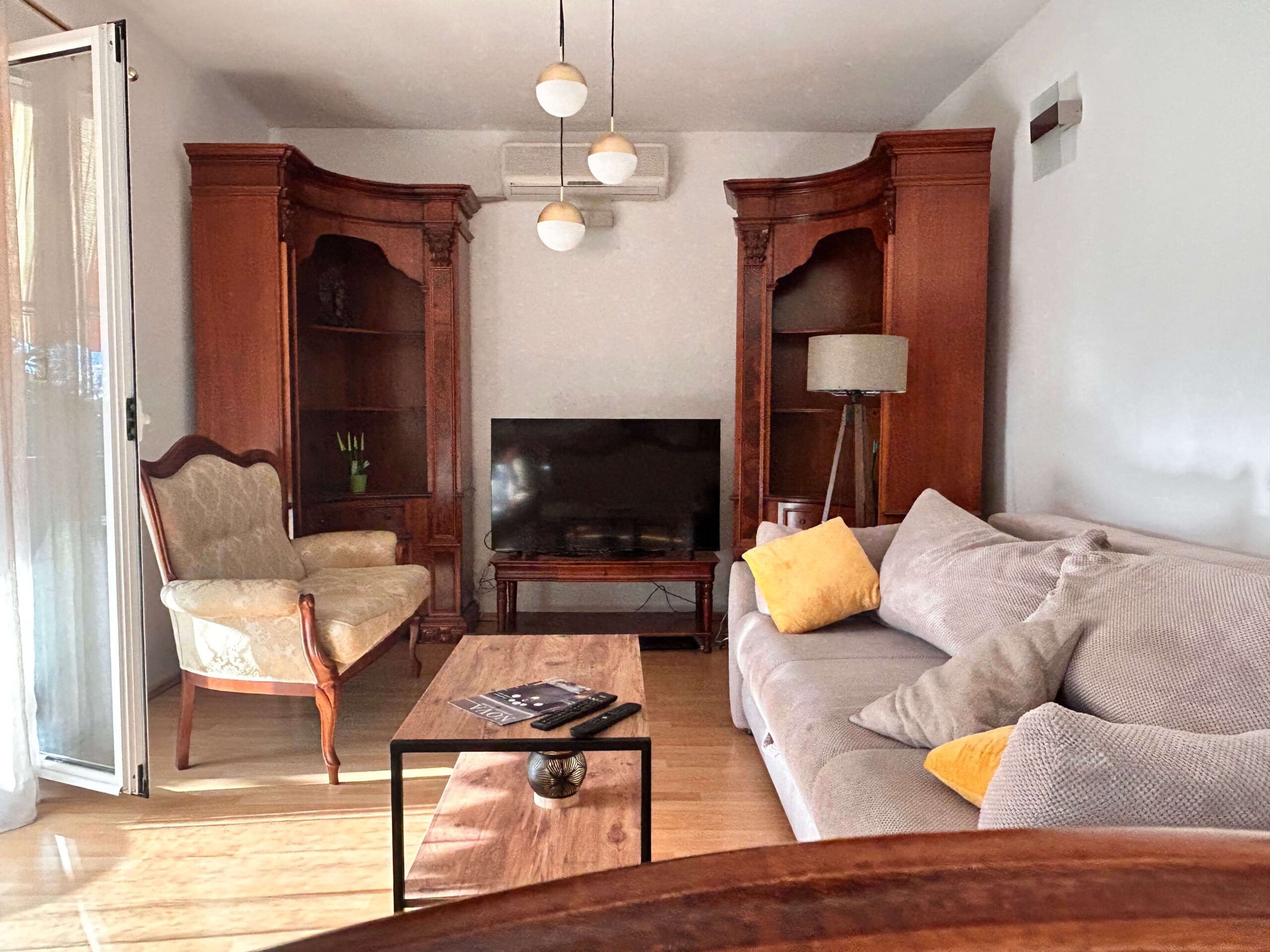 Description (Croatian): Izdaje se na godinu i duže prostrano prizemlje 100 m² dvospratne kuce u naselju Kalimanj,opština Tivat, u blizini mora i 10 min laganog hoda od centra. Dnevna sa šank kuhinjom otvorenog tipa (puno drvo, orah , dnevna – tikovina, kuhinja radjena po mjeri, namjestaj bez oštecenja, skupocjeni stilski namjestaj).