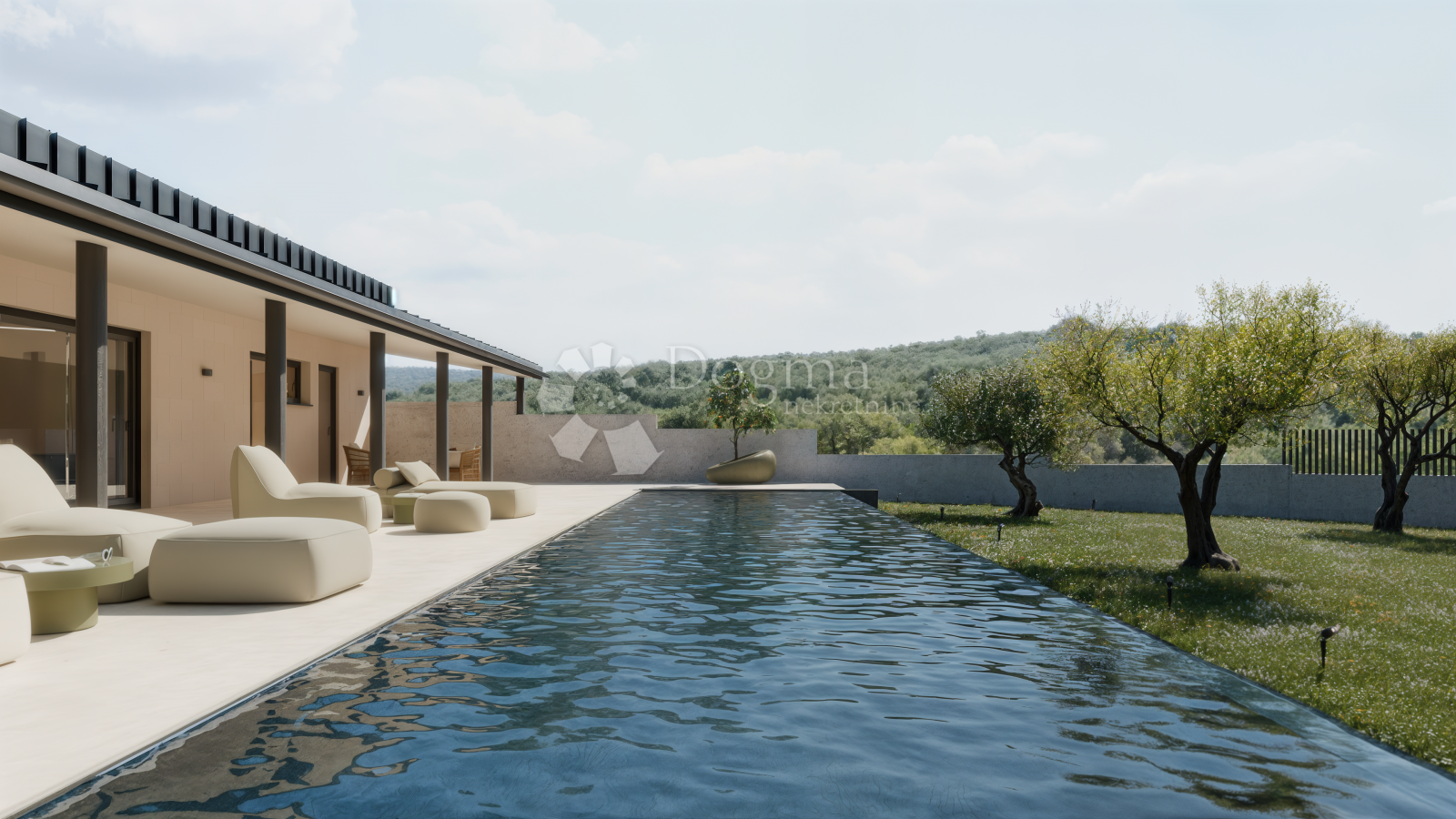 On the last building plot in the zone, with an open view of the Buje hills and the untouched nature of the Buje region — known for its top-quality wines and olive oils — is located this unique architectural work that combines contemporary elegance and Istrian charm.