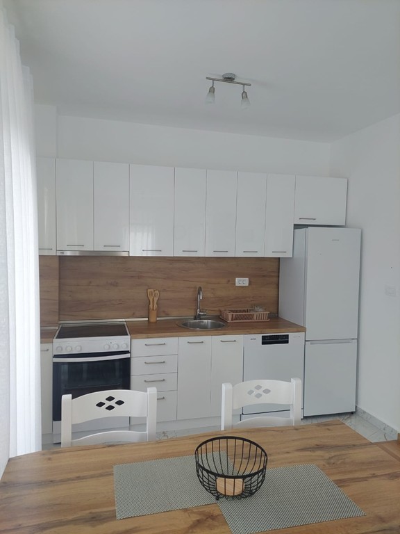 Stan je kompletno opremljen namještajem, bijelom tehnikom i svim potrebnim kućnim aparatima.