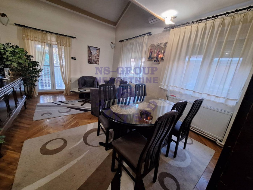 Description (Croatian): Predstavljamo vam kvalitetetno građenu porodičnu kuću na fantastičnoj lokaciji. Izuzetno interesantano projektovana i podeljena na funkcionalne celine. Sastoji se od četri etaže: veliki podrum sa četri prostorije; u prizemlju dnevni boravak sa galerijom, kuhinja, toalet, hodnik, i mini salon; na medjuspratu dve spavaće sobe, kupatilo i galerija i u potkrovlju velika soba na dva nivoa. Grejanje je centralno sa dve peći /gas i drva/. Domaćinski održavana sa lepim urednim dvorištem, Lokacija fantastična, a ipak u lepoj mirnoj ulici. Pozovite naše agente da zakažete gledanje ove odlične porodične kuće.