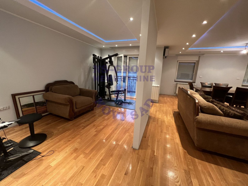 Description (Croatian): Jedinstvena nekretnina kod Banovine. Zauzima celu treću etažu, prodaje se sa garažom u prizemlju objekta od 15m2. Projekat stana je odličan, veliki dn.boravak, izuzetno svetao sa kuhinjom i trpezarijom, 3 spavaće sobe, dva kupatila, garderoberi, ostave... Bez ikakvog ulaganja i prodaje se sa kompletnim nameštajem - sve na fotografijama! Odmah useljiv, u nekretnini se malo živelo ili skoro nikako.