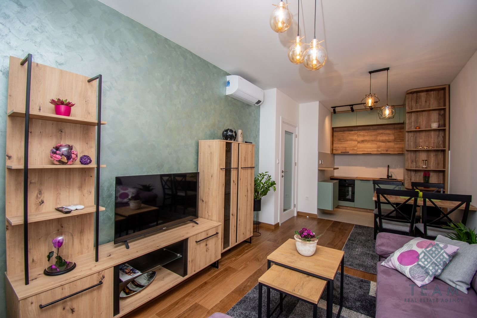 Description: A modernly furnished one-bedroom apartment of 50 m² is available for rent, located on the first floor of the luxury residential complex Green Level – First Building, Podgorica.