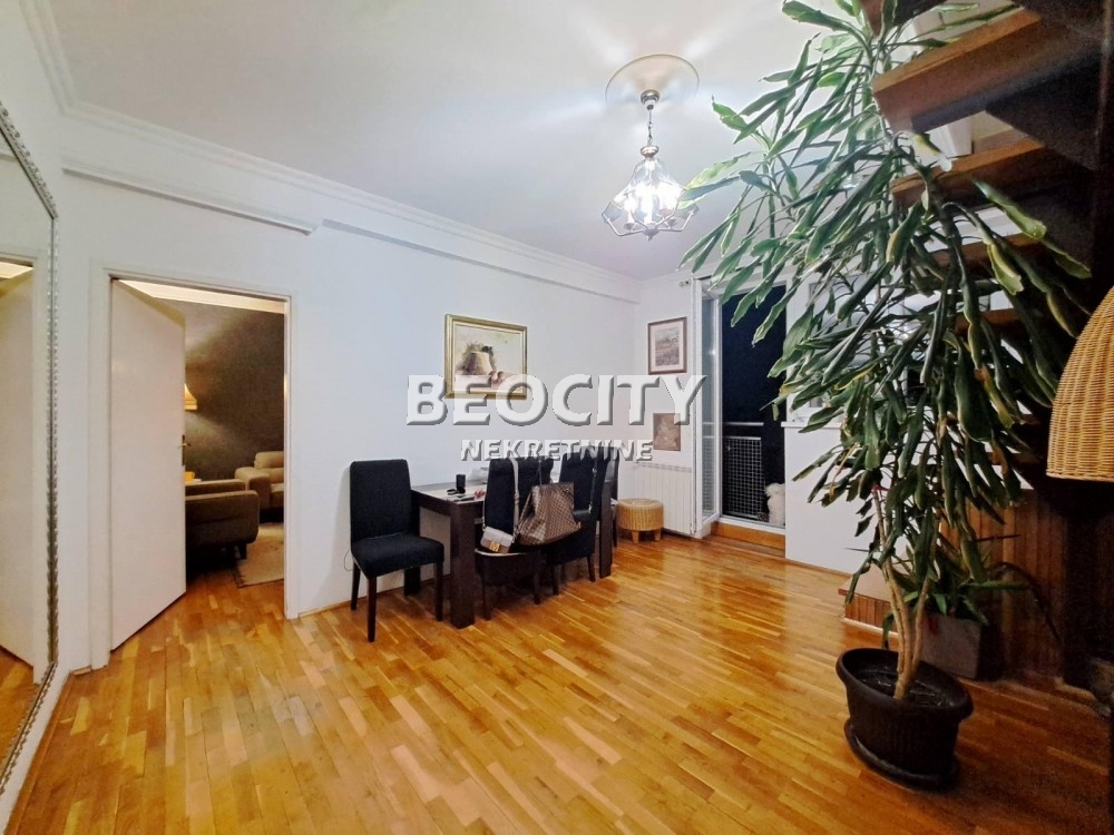Description (Croatian): Agencijski ID: 124100, VI/VI, dupleks, klima, lift, terasa, uknjižen, novogradnja, stambena zgrada. Veoma svetao 4.0 stan na dva nivoa, dvostrano orijentisan, na super lokaciji, sa predivnim pogledom na okruženje. Korisna površina ovog stana je 121m2, uknjiženo 89m2. Donji nivo: ulazni hodnik, dnevna soba, prostrana trpezarija, odvojena luksuzna kuhinja, kupatilo sa kadom. Gornji nivo: tri spavaće sobe, garderober soba, velika terasa sa čarobnom panoramom na grad, kupatilo sa tuš kabinom. Sve prostorije imaju prirodnu ventilaciju. Kvalitetna nadogradnja iz 2000.godine. Grejanje je centralno, pvc stolarija, hrastov parket, dosta boksova za odlaganje. Pripadajući podrum. Većina zidova nisu noseći, tako da su adaptacijom moguće izmene rasporeda prostorija. U cenu su uključeni svi ugradni elementi, kao i kvalitetna kuhinja sa tehnikom. Zgrada uredno održavana sa liftom koji ide do 5.sprata. U neposrednoj blizini nalaze se SC Vračar, Kalenić pijaca, brojni prestižni restorani, kafići...Gradski prevoz odlično povezan sa svim delovima grada. Uknjižen na vlasnika 1/1, bez tereta. Više informacija na: www.beocitynekretnine.rs Agencijska provizija 2%....