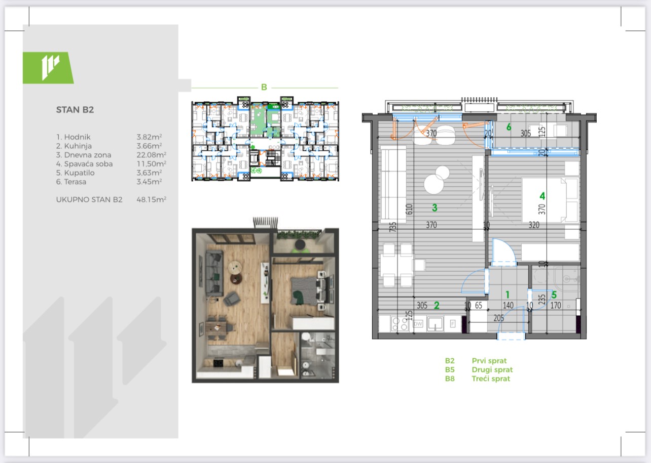 Description: A one-room apartment of 48m2 is for sale in Podgorica, in the "Level Residence" complex, in Radnička Street, Gornja Gorica. It is located on the third floor and has a parking lot under the ramp. Completion date: March 2026. Positioned in the immediate vicinity of the Tološka Forest and the University Center, this complex offers maximally comfortable, high-quality and functional living spaces of various structures. The modern technical equipment of the building with the possibility of complete automation, the high quality of the used materials and finishes, along with the natural environment with preserved green areas make this complex an ideal place for a pleasant and comfortable life.