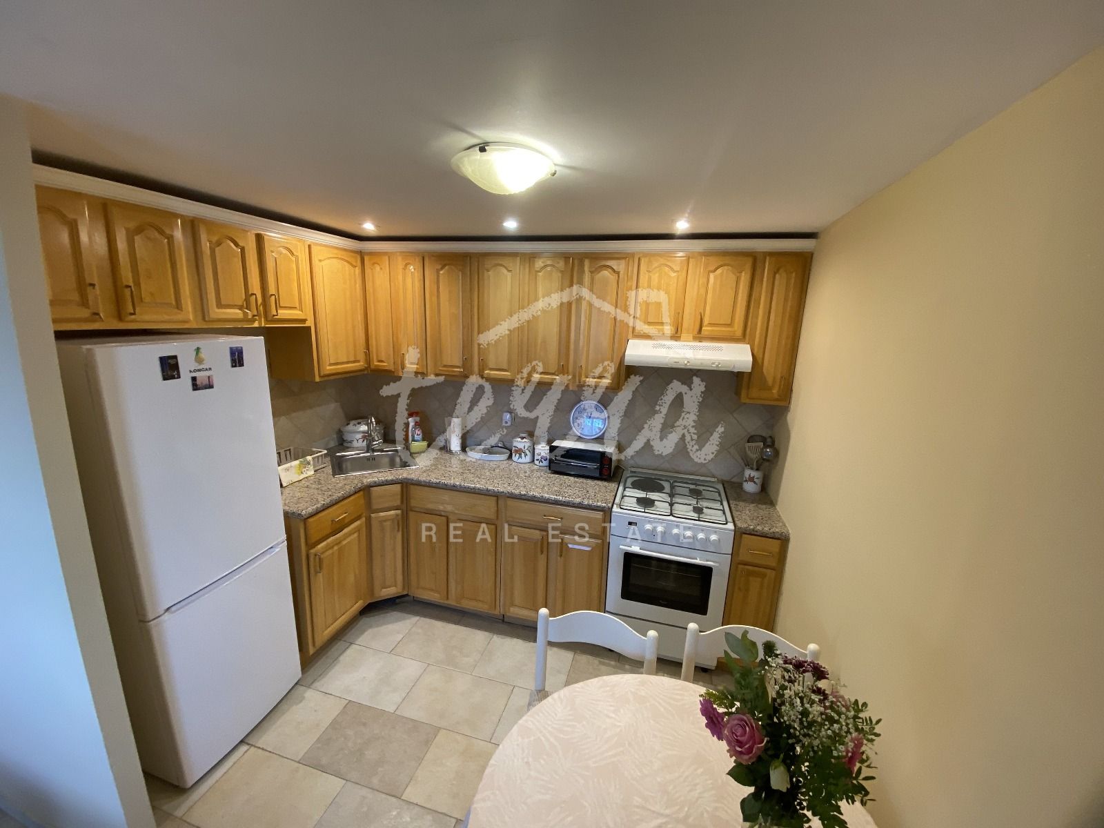 With a total area of 70 square meters, it consists of a kitchen with dining area, living room, two bedrooms, bathroom and storage room where the laundry is located.