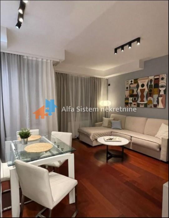 Description (Croatian): Luksuzno namešten stan u novoj zgradi sa terasom i aluminijumskom stolarijom. Zgrada i garaža pokrivene video nadzorom. Topla voda dostupna tokom cele godine. Odlična lokacija, blizina javnog prevoza i velike prodavnice.