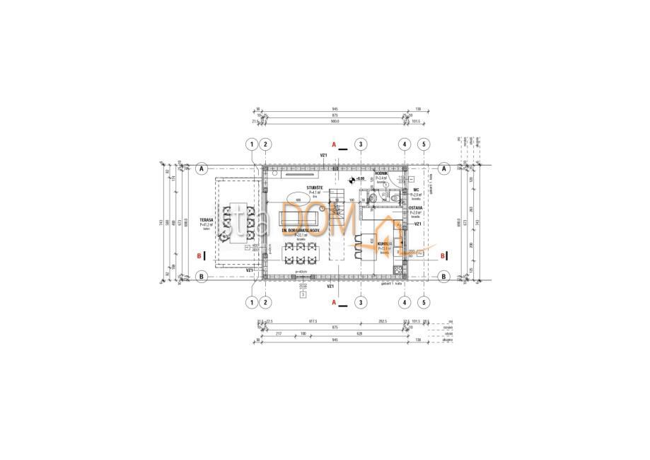 -Main project for a house with a swimming pool, total net area of 120 m², including auxiliary buildings.