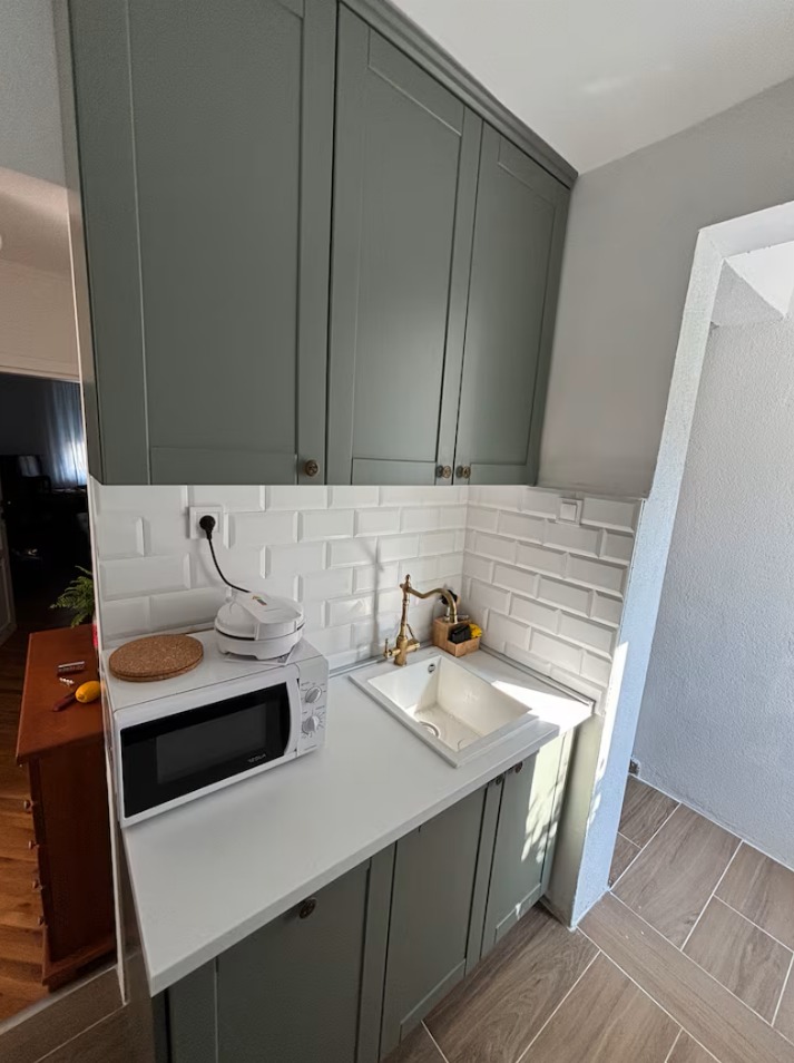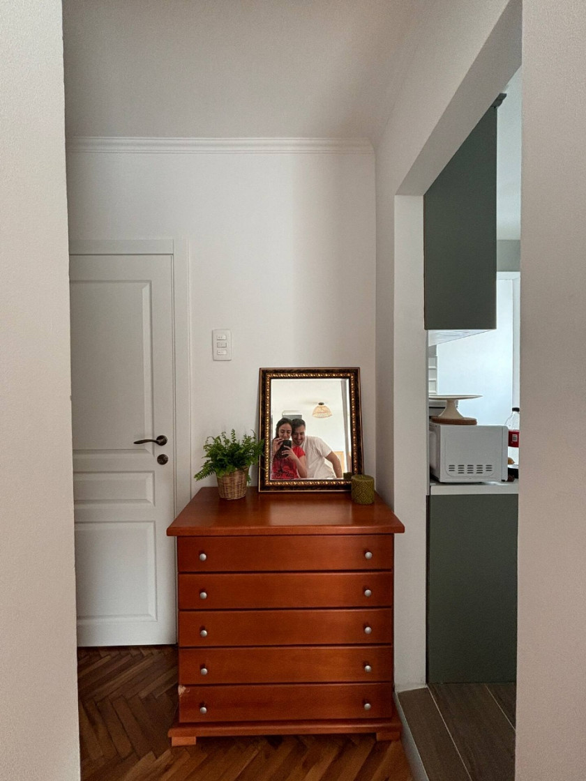 Structure of the apartment: hallway, living room with kitchen and dining table, a bedroom, a bathroom and a terrace.