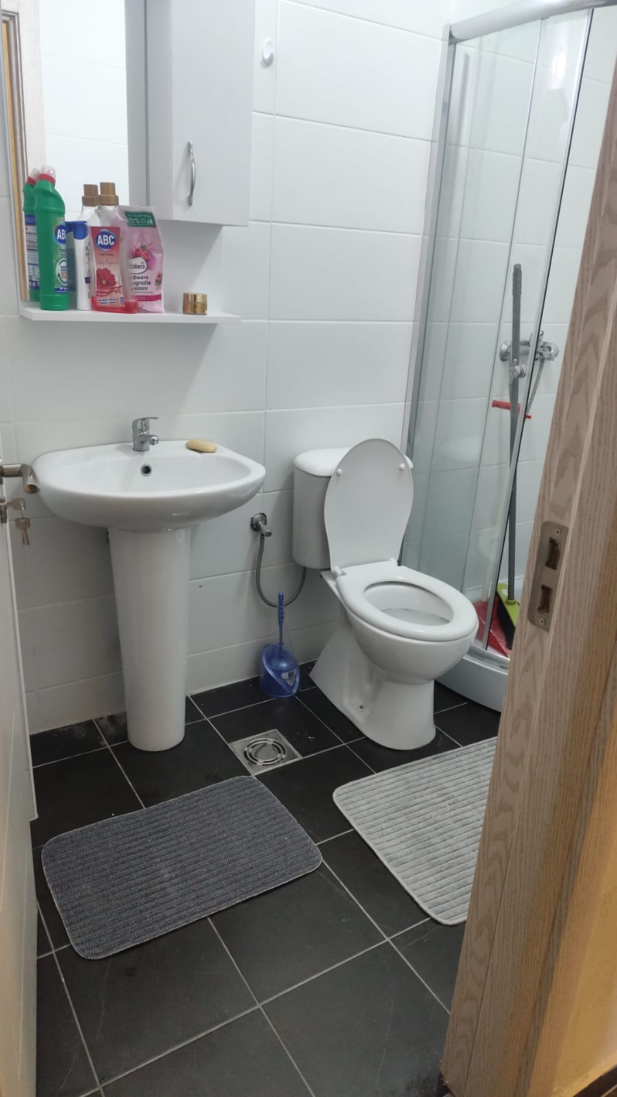 Description: The 72m2 apartment is located on the first floor. It has two bedrooms, two bathrooms, two corridors. In front of the building is a playground for children. The apartment is fully equipped and ready to move into. The conditions are one rent and a deposit in the same amount.