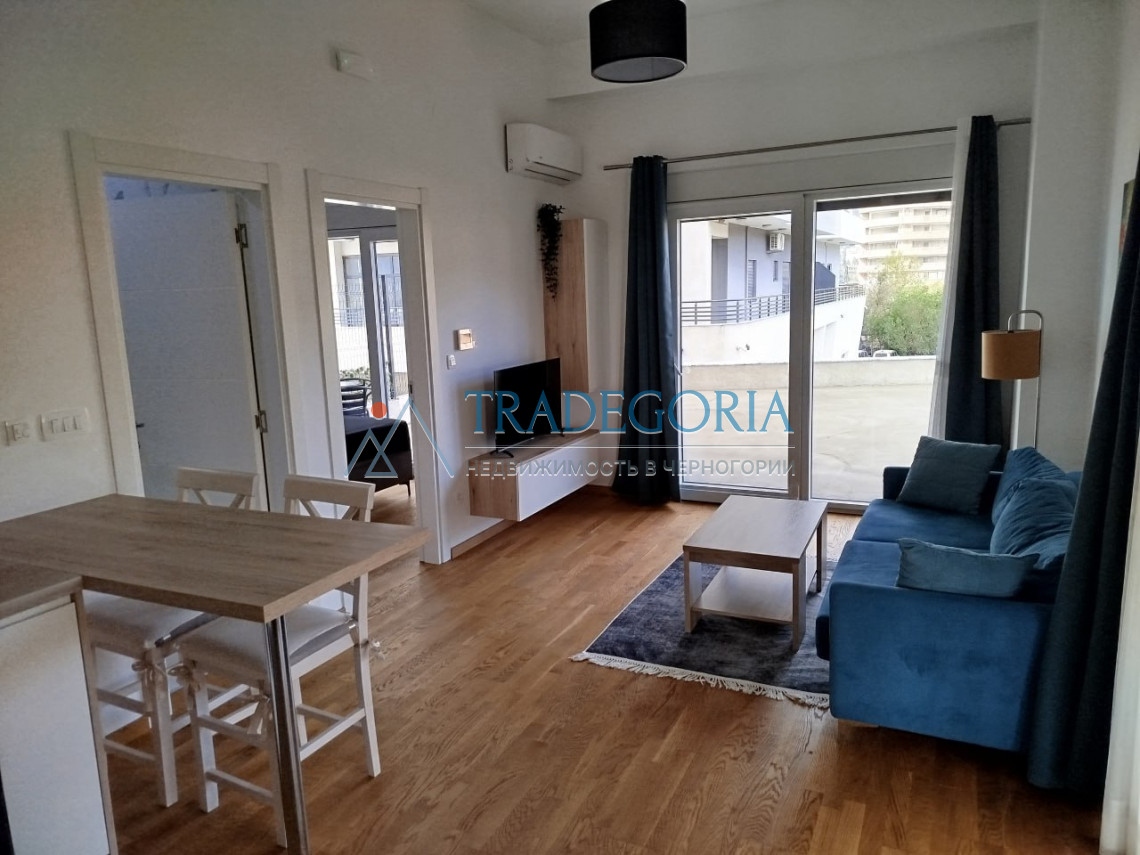 Description: descriptionBar. Center. Residential complex Twin House For sale is a modern apartment of 36 m² + 50 m² terrace , located on the second floor of a new residential complex in the center of Bar. Layout: spacious kitchen-living room and one cozy bedroom. The building has two elevators and 24-hour video surveillance . Condition and equipment: The apartment is fully furnished and equipped with all the necessary appliances for a comfortable stay. Each room has air conditioning, and the bathroom has heated floors....