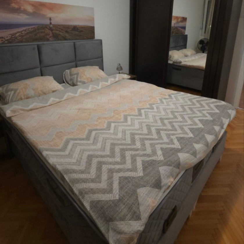 The apartment is located on the 2nd floor of the building where Coton is situated, which does not have an elevator. It is in an excellent location, close to Hotel Ramada, kindergartens, and an elementary school. Two high schools are a 5-minute walk away, while the city center is about 10 minutes away. Public parking is available around the building.