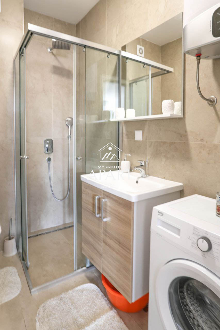 Type: Vacation Apartment Rental District: Budva Okolina Location: Bečići Price: €500 Year Built: 2019 Bedrooms: 1 Baths: 1 Living Area: 51 m2 From Shore (m): 350 New Construction Air Conditioning