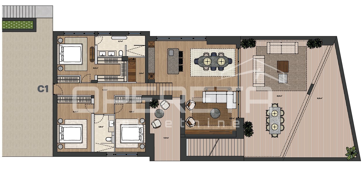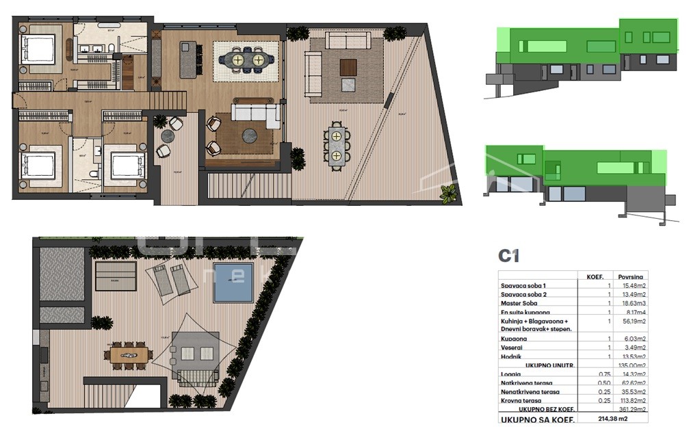 Description (Croatian): PRODAJA STANA, REMETE, NOVOGRADNJA, PENTHOUSE 214,38m2, 4-soban.Prodaje se vrhunska novogradnja na odličnoj, mirnoj lokaciji u jednom od najtraženijih dijelova grada u blizini Maksmirske šume, osnovne škole, internacionalnih škola na Fratrovcu, vrtića, prodavaonice, a autobusna linija koja vodi na Svetice i Kaptol je ispred same zgrade.Manja, luksuzna zgrada sa svega 4 stana osigurava osjećaj privatnosti i intime.U gradnji će biti korišteni samo vrhunski materijali i oprema (parket prve klase, vrhunska keramika i sanitarije premium brendova, unutarnja vrata sa skrivenim pantima i integriranim dovratnicima u ravnini zida), te visina stropova od 3,00m i velikim staklenim stijenama sa alu žaluzinama doprinijeti će osjećaju luksuza.Svaki stan dolazi sa jednim garažnim i jednim vanjskim parkirnim mjestom.Penthouse stambene kvadrature 135,00m2 sa prostranom krovnom terasom, nenatkrivenom terasom i loggiom sastoji se od prostranog boravka sa kuhinjom i blagovaonicom, master spavaće sobe sa vlastitom kupaonicom, 2 dodatne spavaće sobe, kupaonice i vešeraja.Dovršetak gradnje proljeće 2027.g.