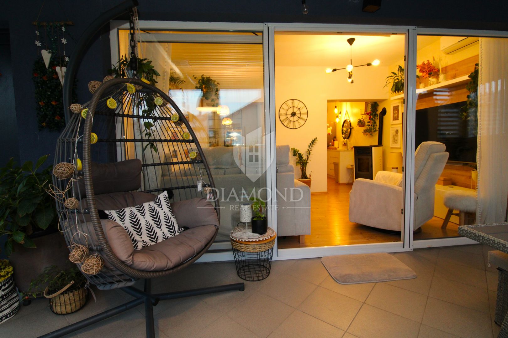 Stan od 60 m² sastoji se od dvije spavaće sobe, kuhinje, blagovaone i dnevnog boravka iz kojeg se izlazi na predivnu terasu s ljetnom kuhinjom i roštiljem – savršeno mjesto za opuštanje i druženje s prijateljima i obitelji. Lokacija stana pruža miran ambijent, a istovremeno je blizu škole, trgovina, javnog prijevoza i svih sadržaja potrebnih za svakodnevni život.
