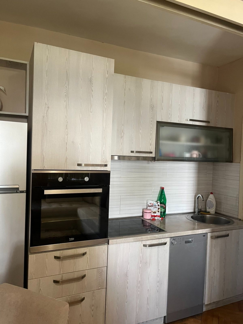 Description: Two-room furnished apartment 63m2 for rent in Mitra Bakica street, near the bus station, Podgorica. It is located on the 4th floor of a residential building with an elevator. The apartment has a balcony that extends along the entire length of the apartment, from the courtyard side of the building. Large public parking lot in the vicinity of the building. The apartment is suitable for individuals or couples looking for a comfortable and functional apartment in an attractive location.