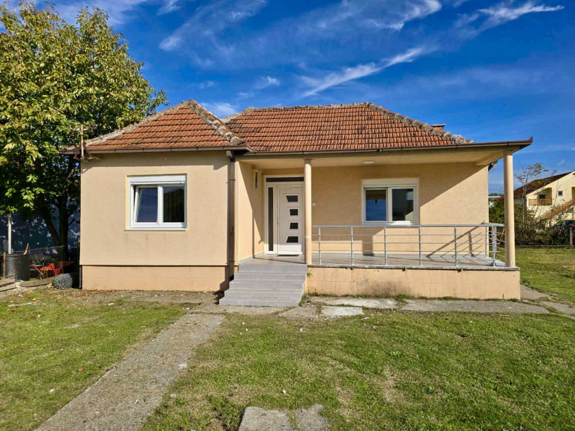 Kuca je povrsine 75m2 i sastoji se od dnevnog boravka sa kuhinjom, 2 sobe i kupatila. Placa se prostire na 1000m2 i na njemu se nalazi pomocni objekat sa 2 prostorije.