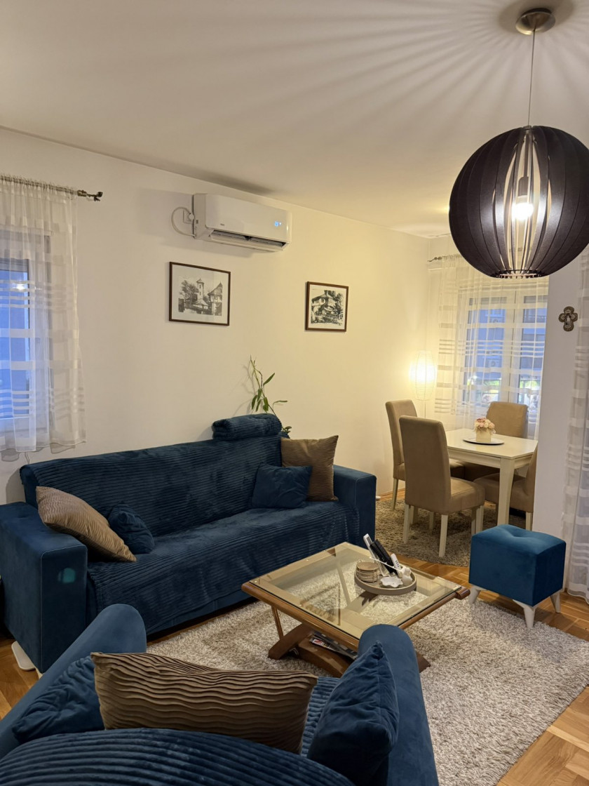 Description: One-bedroom apartment for sale in the Nivela building in Zabjelo. The apartment is located on the first floor of the building, has 52 square meters and is fully furnished with all the necessary things for a comfortable and pleasant life. The structure of the apartment is as follows: living room with kitchen and dining room, corridor, bedroom, bathroom and terrace.