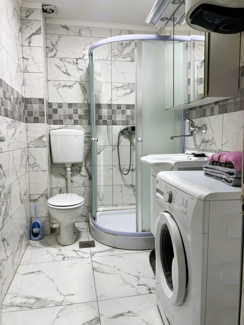 Apartman sadrži dnevni boravak, kuhinju, prostrano kupatilo i ostavu (za sušenje odjeće, ostavu i garderober).