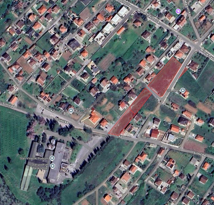 Description: Gornja Gorica, Podgorica, urbanized plots with a total area of 4026 m2. Completed roads, sidewalks and connections of all installations to the plots (water, electricity, sewerage, TV + internet), which is a potential reduction of future construction costs. Plots are ~2.5km from BIG Fashion, ~5.5km from the city center.