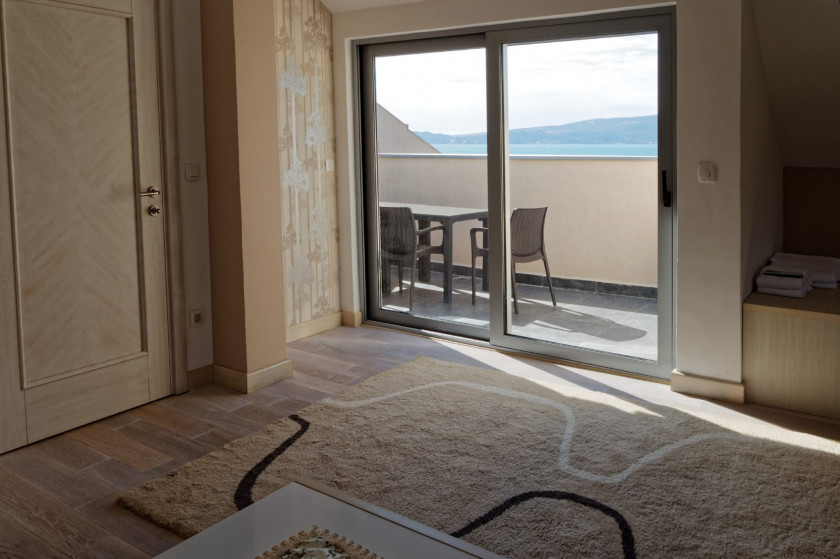 Luxury four-star apartment complex in Tivat, right by the sea, just a few hundred meters from Porto Montenegro Marina. Spacious, bright apartments with modern furniture and a contemporary kitchen. Private beach/pier, air-conditioned, LED TVs with cable channels, Wi-Fi, full video surveillance.