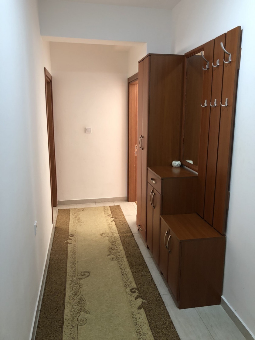 Description: One-bedroom, furnished apartment 48m2 for rent in Pristinska Street, behind the Forum at the Old Airport, Podgorica. The apartment is located on the 3rd floor of a smaller residential building. It consists of a hallway, a spacious living room with a kitchen and dining room, a bedroom and a bathroom. The location is quiet and well connected with all the necessary amenities. Parking in front of the building.