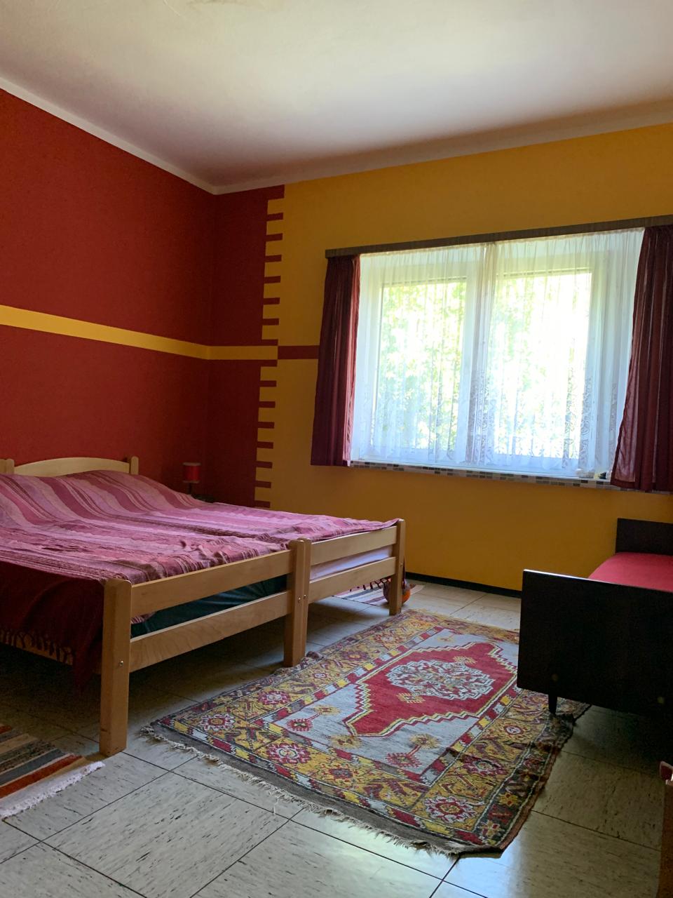 Over 200 m/2 of living space (two two-room apartments, one on each floor), basement with workshop over 30 m2, yard 1200 m2, three parking spaces plus garage. Two huge terraces, two entrances to the house, internal stairs to the first floor and the basement, the walls of the house are 40 cm thick. A concrete path above ground level runs throughout the yard