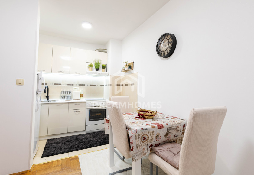 Description: A fully furnished one-bedroom apartment of 40 m² is offered for sale on the 6th floor of a building with an elevator, located next to the Bovoto store and across from the Kostas Hotel in Stari Aerodrom. The apartment is move-in ready, has clean title documents, and offers excellent value for buyers looking for a modern home without additional investment.